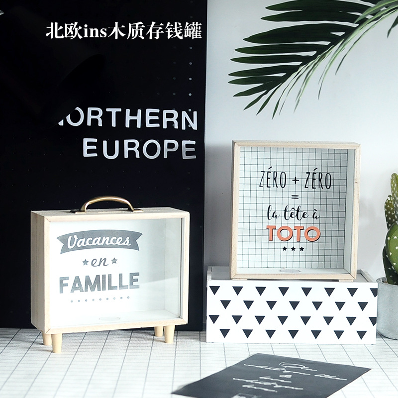 Household solid wood creative money tube wooden can store and retrieve transparent coin jar personality piggy bank money tube ornaments