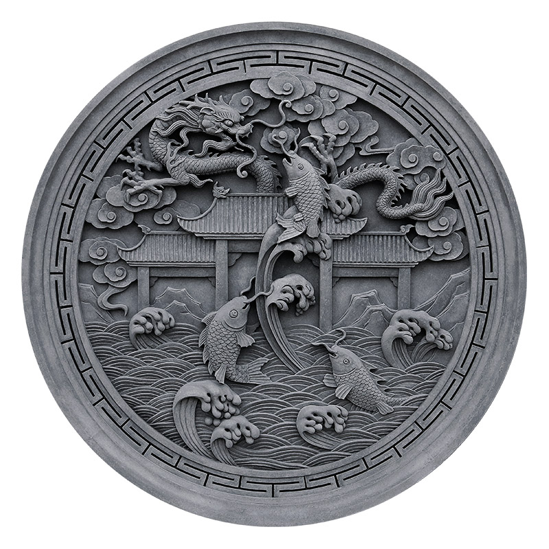 Ancient building brick sculpted relief fish Leap Longmen retro decoration Shadow wall wall imitation ancient brick sculpted Chinese style Four-in-house photo wall relief