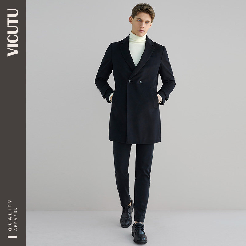VICUTU wool coat men's business casual medium long lapel wool coat coat men's Hui