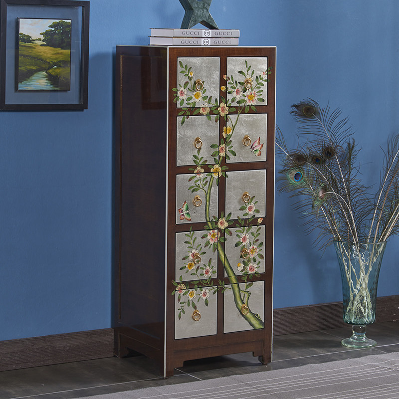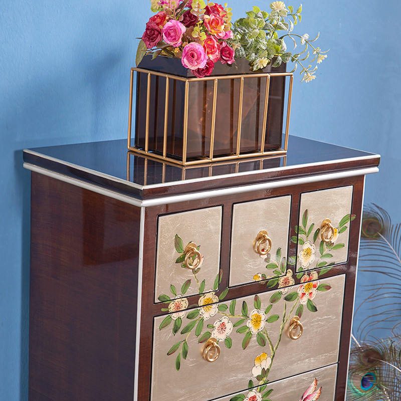 New Chinese style porch cabinet American country solid wood classical painted high cabinet decorative cabinet bedroom side cabinet storage cabinet storage