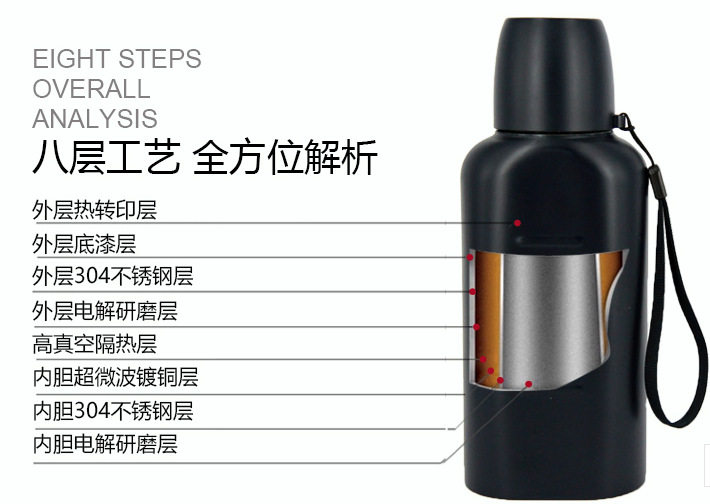 Vacuum Flat Insulation Motion Kettle Stainless Steel Outdoor Security Patrol eight pieces of accessories blue