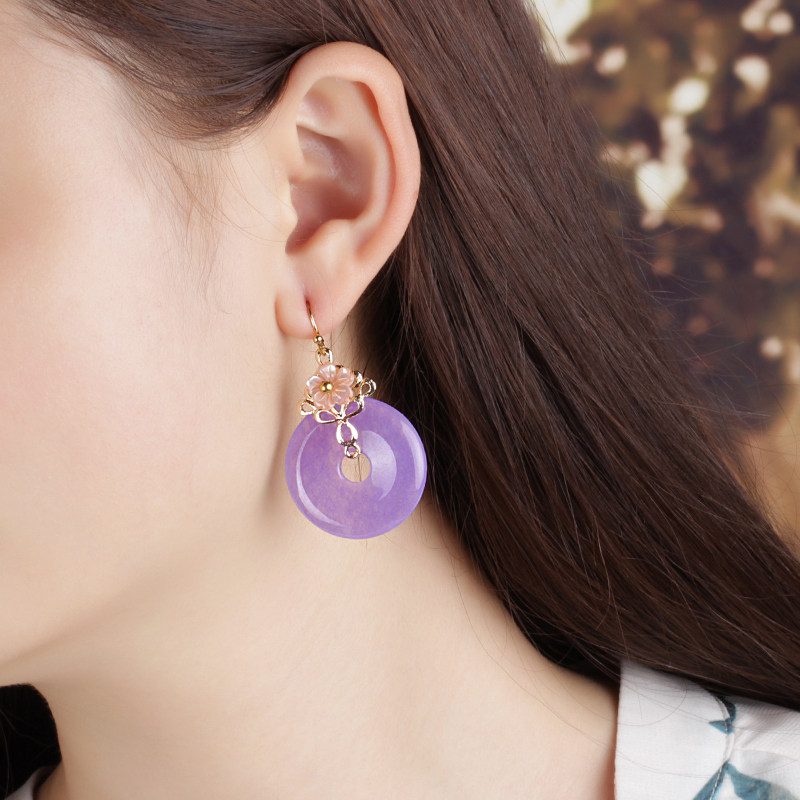 National Wind Earrings Earrings With a small ear Pendant Ear Clip Woman Retro with Exaggerated Temperament Superfairy Purple Oversized Earrings