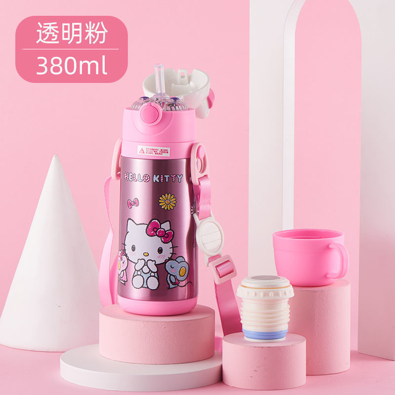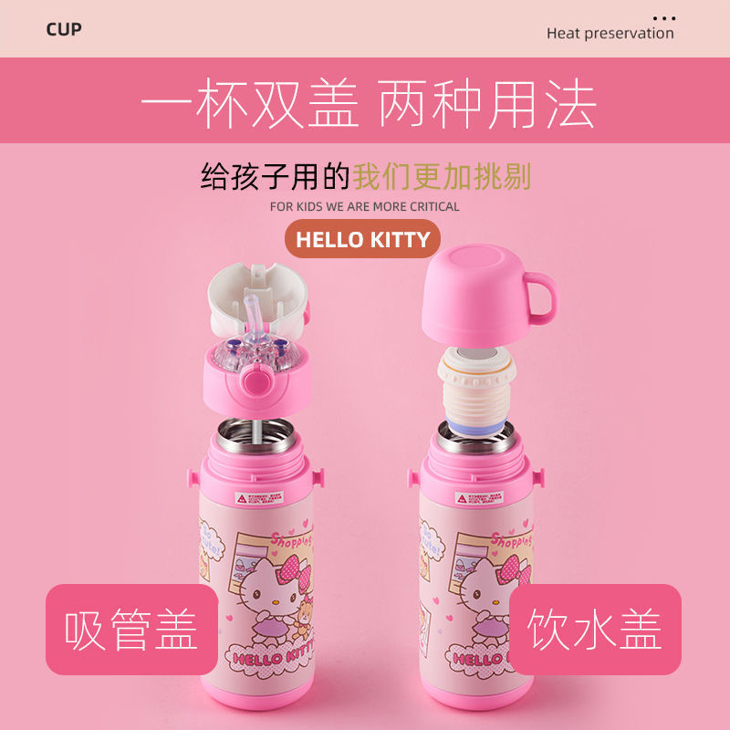 Female baby insulated cup with straw dual-use anti-fall portable cute children Kindergarten primary school pupil Hello water glass