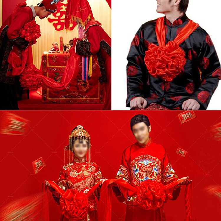 Chinese wedding groom's corsage big red flower satin red hydrangea awards commendation flower ball wedding hand pulling flower ball