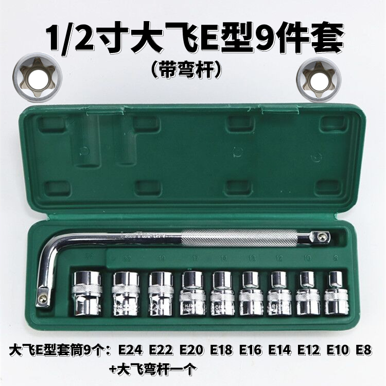 Dafei 1 2 inch E type 9-piece set (with bending rod) Dafei 1 2 inch E-type 10-piece set (without bending rod) Dafei E-type + Xiaofei E-type sleeve 15-piece set