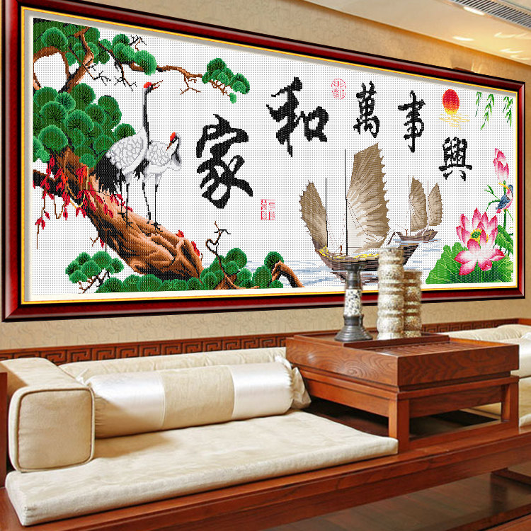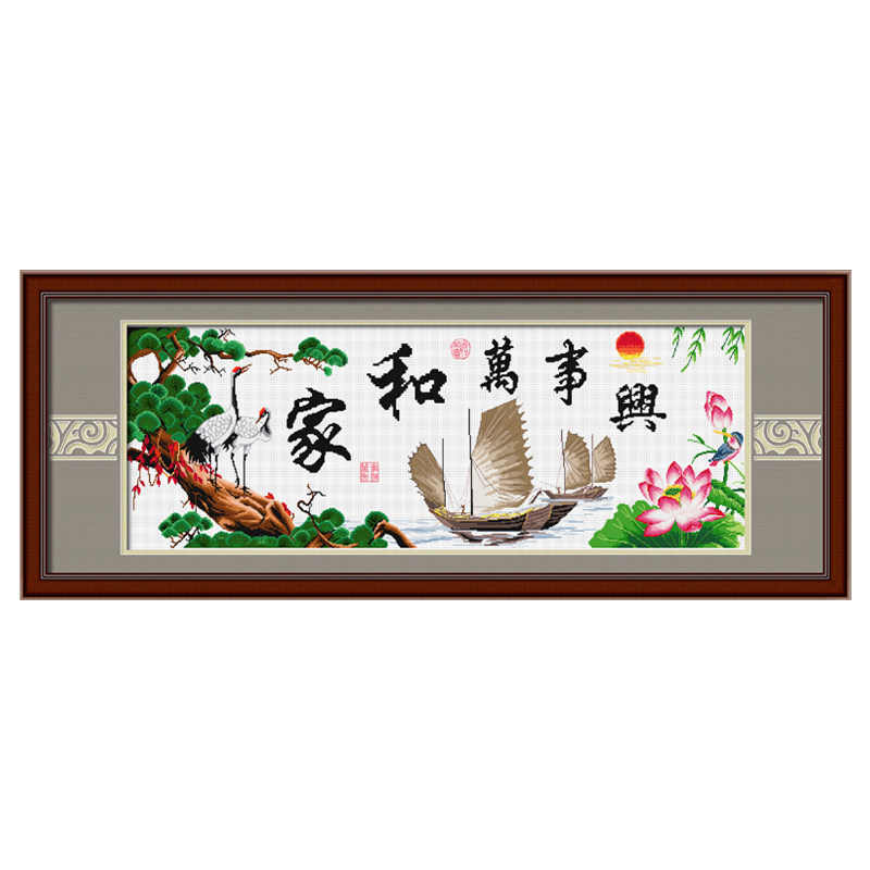Cross stitch home and everything is prosperous 2021 new thread embroidery household living room bedroom lotus Xianghe Furui large embroidery
