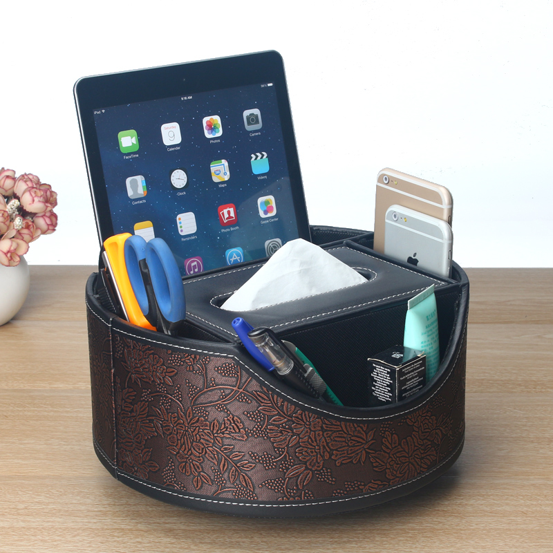 Leather multi-function 360 degree rotating creative living room coffee table desktop remote control storage box Toilet paper box tissue box