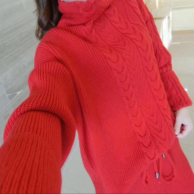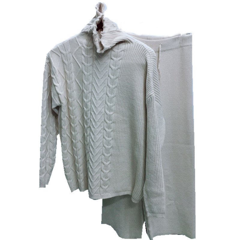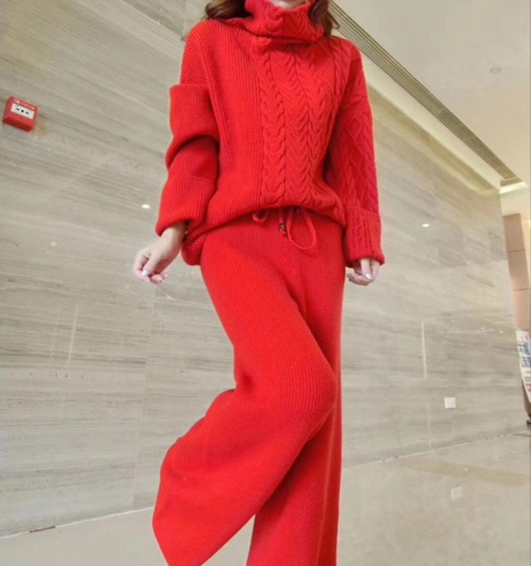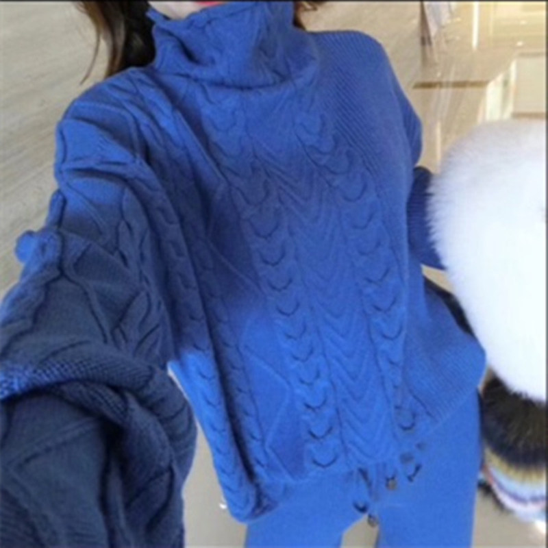 European Station 2022 Autumn Winter Blue Cashmere Suit Jumpsuit With High Collar Thickened Sweater Fashion Broadlegged Pants Two Sets
