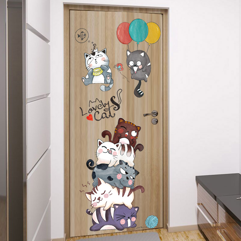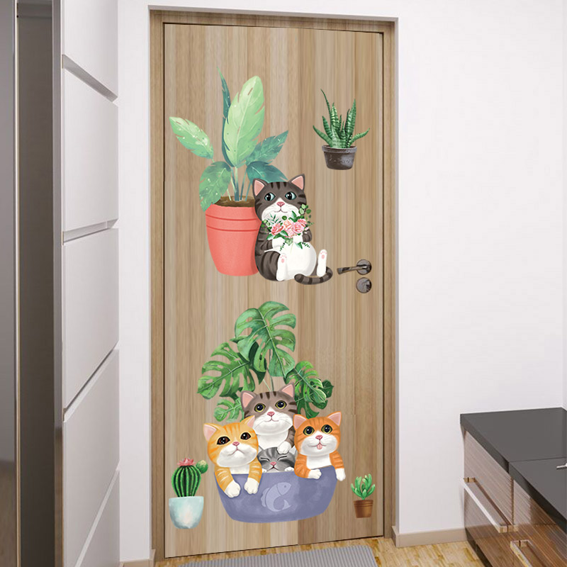Happy Home Branches Flowers Basket 1 Cartoon Height Ruler Happy Little Cat Door Stickers Hand-painted Large Eyed Cat Goat Hump Door Sticker Cartoon Cute Cat Joy Zoo Door Sticker Kitty Pumpkin Soup Animal Mug