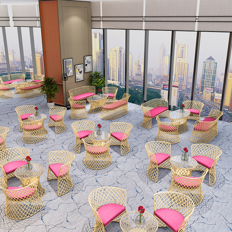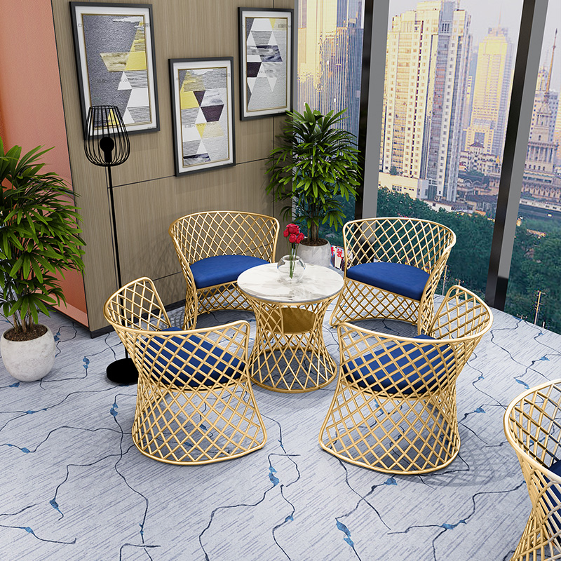 Nordic minimalist wrought iron sofa chair combination conference room leisure office three people modern fabric golden sofa card seat