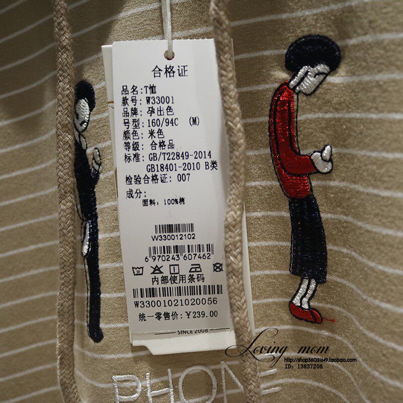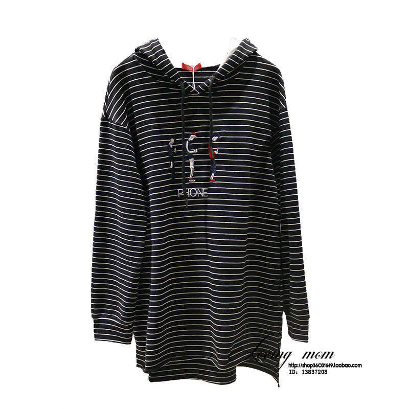 Pregnancy excellent pregnant woman autumn and winter money pure cotton knit T-Shirt carditis with cap stripe knit pregnant woman sweatshirt W33001