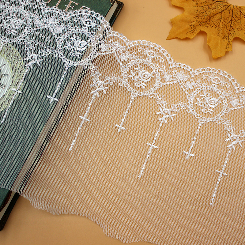 Holy Cross Rose Silk Thread Hot Selling Mesh Yarn Embroidery Flowers Handmade Clothing Wedding Dress Accessories Lace lace 13cm