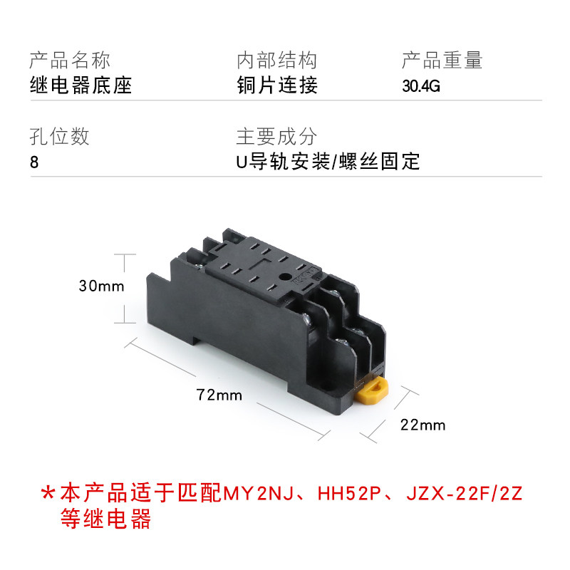 Electromagnetic relay small base PYF08A HH52P seat MY2NJ seat word