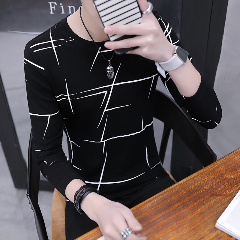 The long - sleeved T - shirt men's autumn shirt dress 2022 spring and autumn men's shirt clothes on the han - edition trend