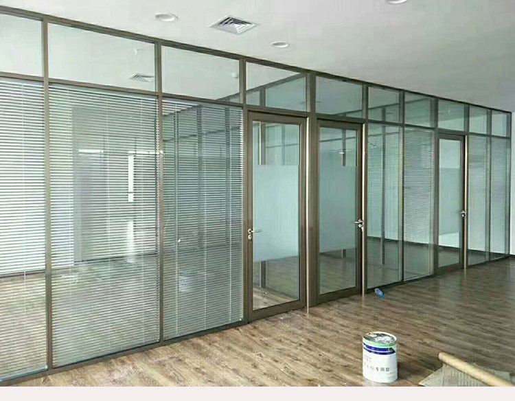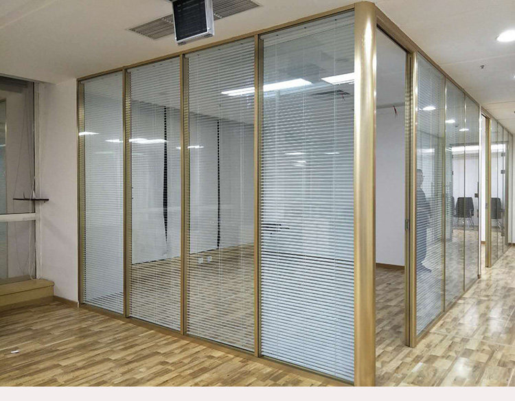 Guangzhou Office Tempered Glass Partition Wall High Partition Aluminum Alloy Double Tempered Glass Shutter Soundproof Wall