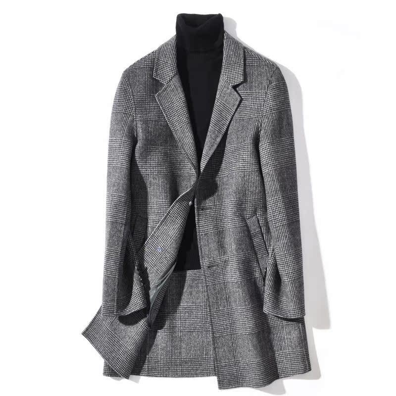 Wool double-sided coat Men's medium and long version of wool coat Men's Korean version of cashmere windbreaker jacket Houndstooth