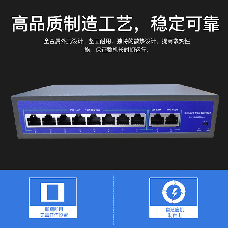 Joan 100 trillion 8 oral powered standard POE switch iron shell 8-way professional network monitor wire splitter lightning protection-Taobao
