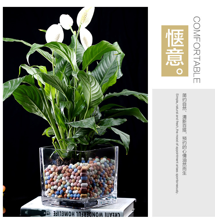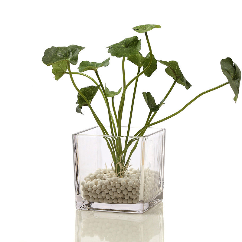 Simple hydroponic plant glass vase square square cylinder office transparent green dill rich bamboo copper money grass flower pot