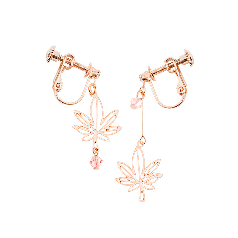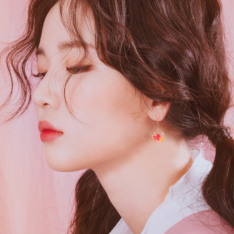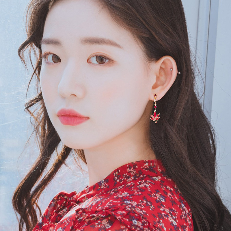 OSEWAYA ear clip maple leaf hollow pendant Japanese and Korean sweet fashion diamond daily elf ear pin earrings