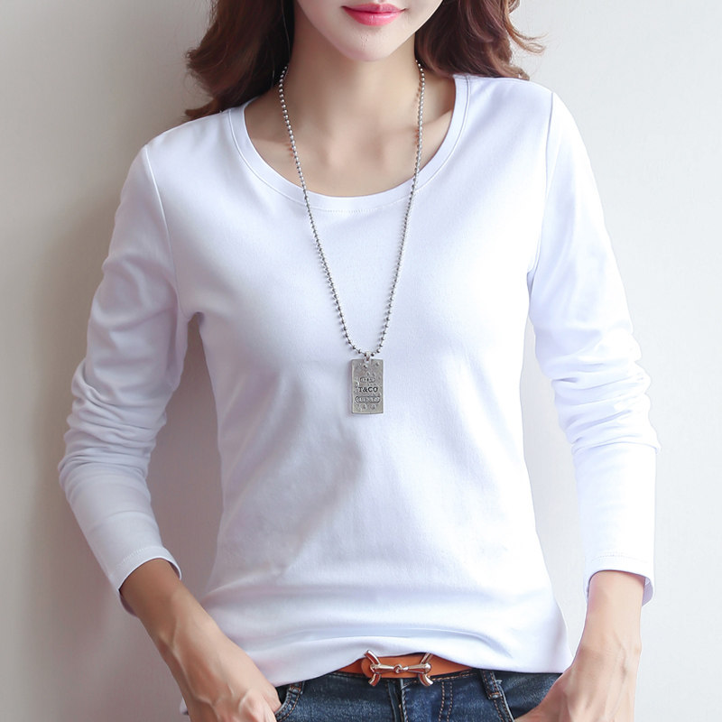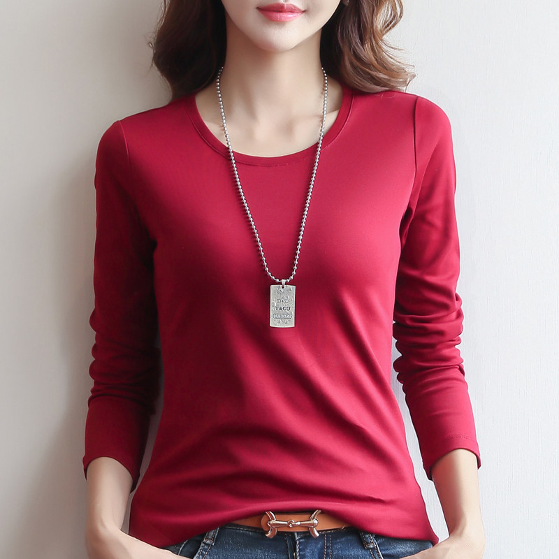2022 new autumn and winter black round neck long-sleeved T-shirt women's slim bottoming shirt solid color T-shirt Korean version cotton top