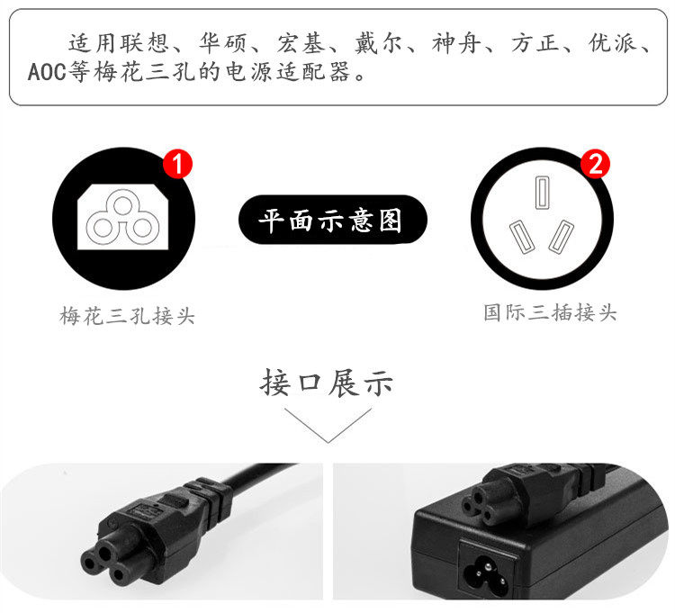 VIEWSONIC VIEWSONIC VS16365 LCD display power cord Plum blossom three-hole plug cable AC100-240V