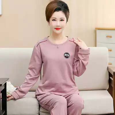 Middle-aged women's long-sleeved pullover cotton pajamas middle-aged and elderly women's mother-in-law loose spring and autumn and summer home clothes set