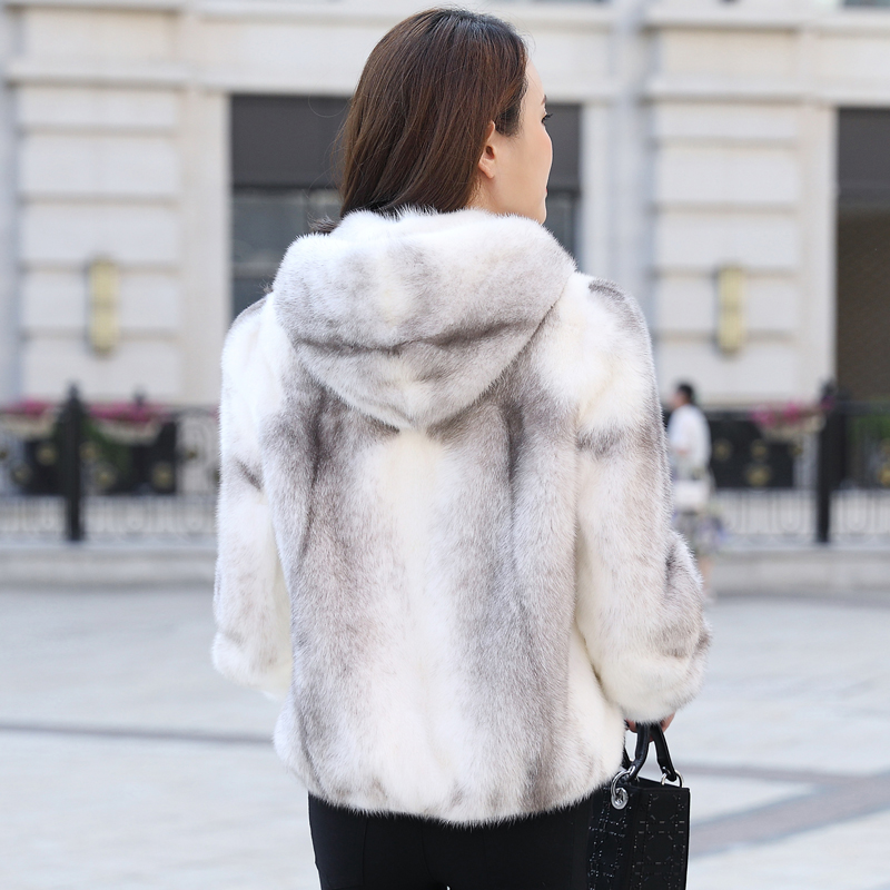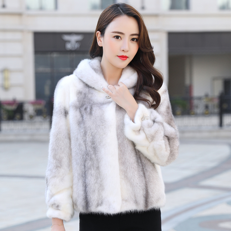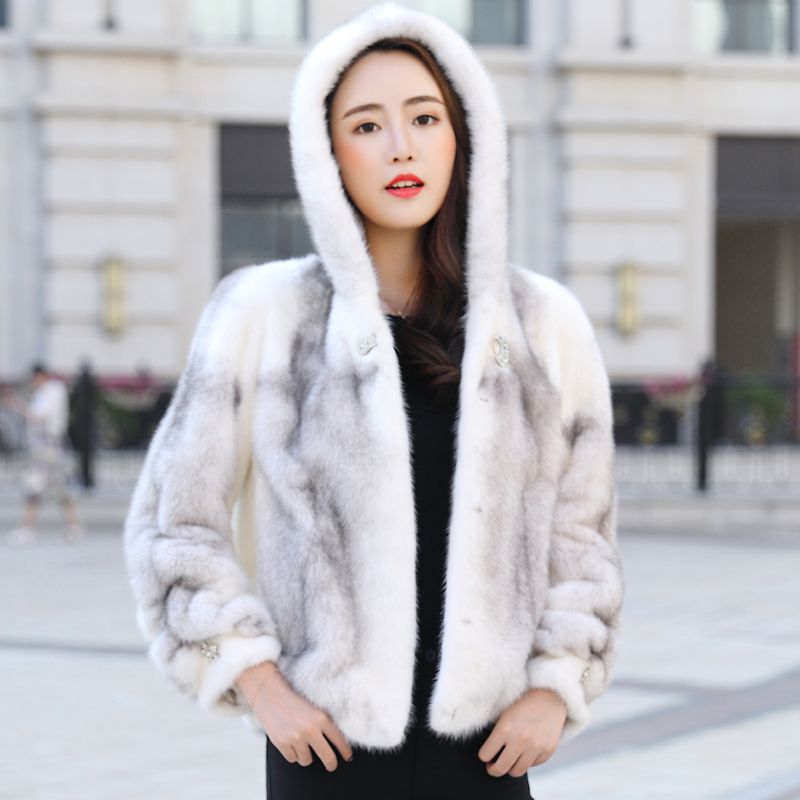 2022 winter new cross mink fur coat female whole mink short hooded imported mink fur coat Haining fur