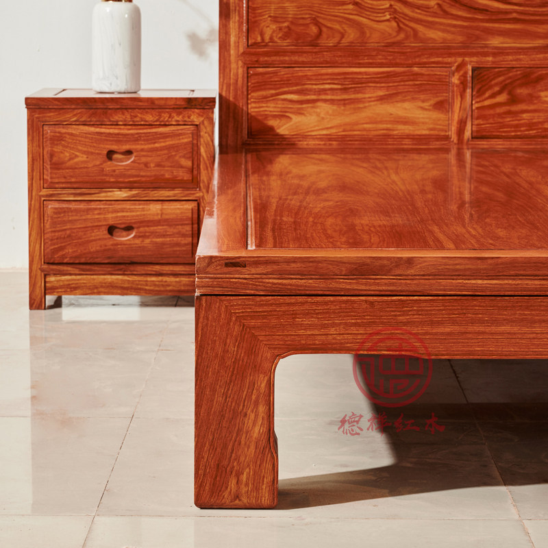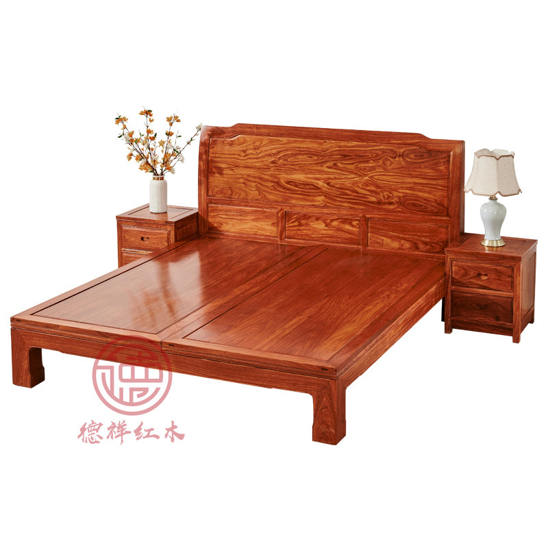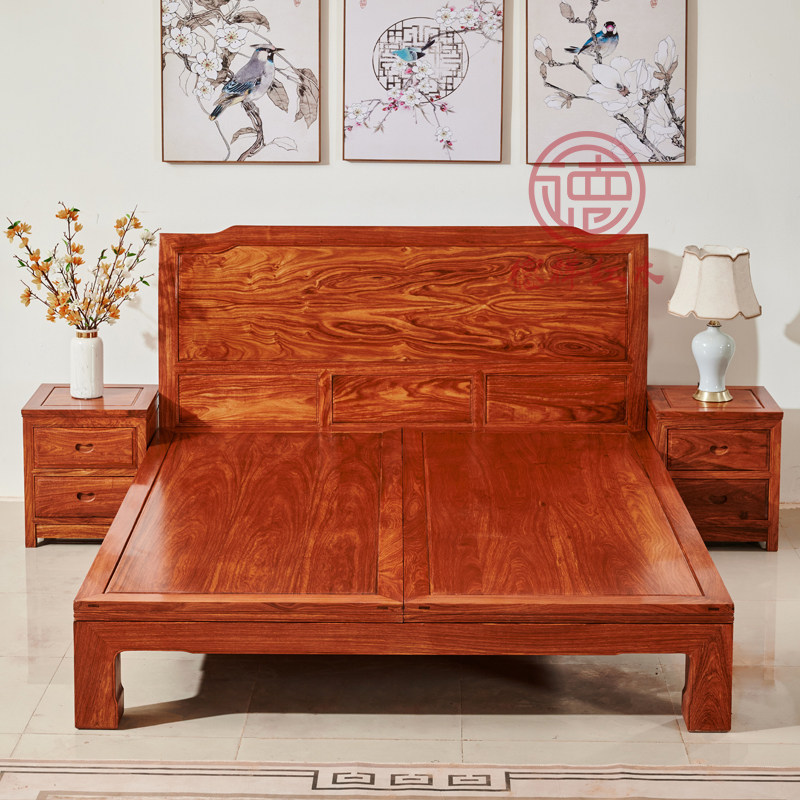 Red wood furniture New Chinese style One-heart-bed flowers pear wood Hedgehog Purple Sandalwood Bed solid wood bed Sleeping Bed Wedding bed
