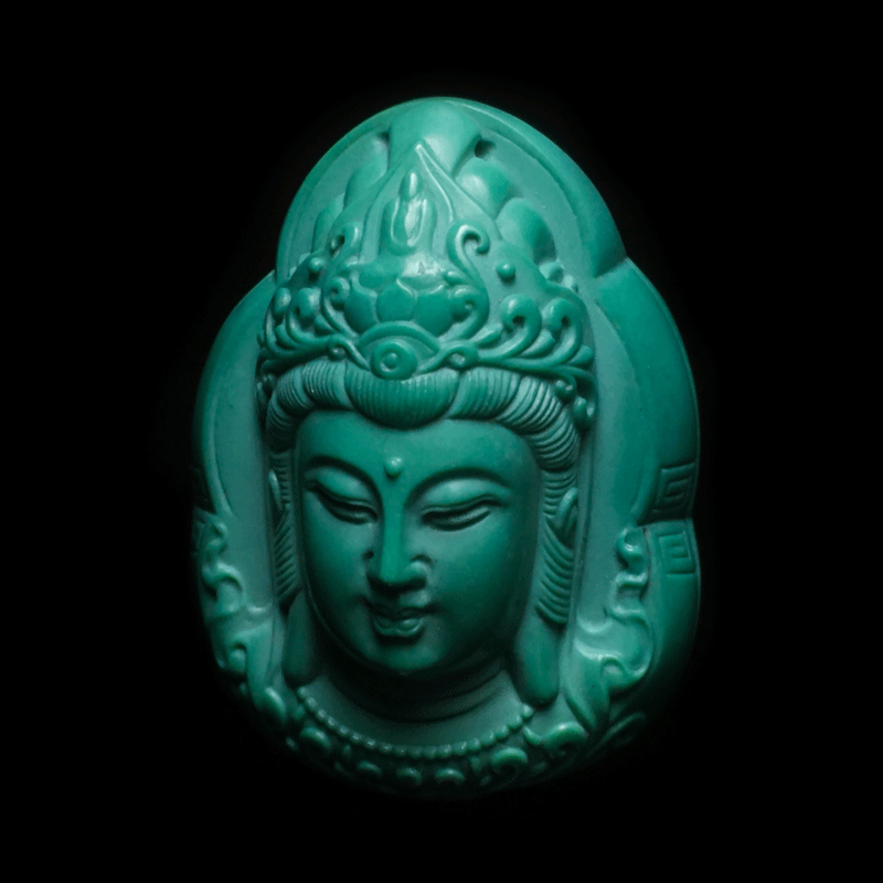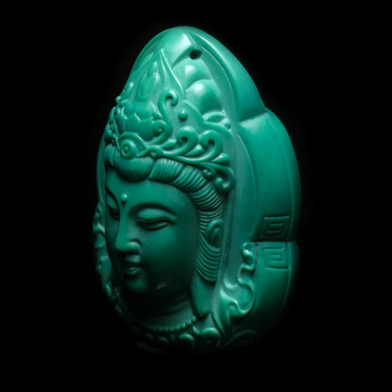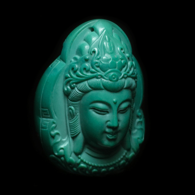 Natural raw turquoise Guanyin Buddha statue pendant Honmei Buddha handicraft carving master Baochang Guanyin pendant