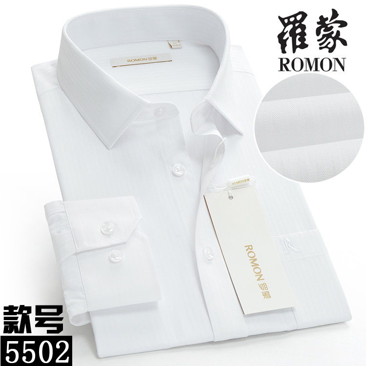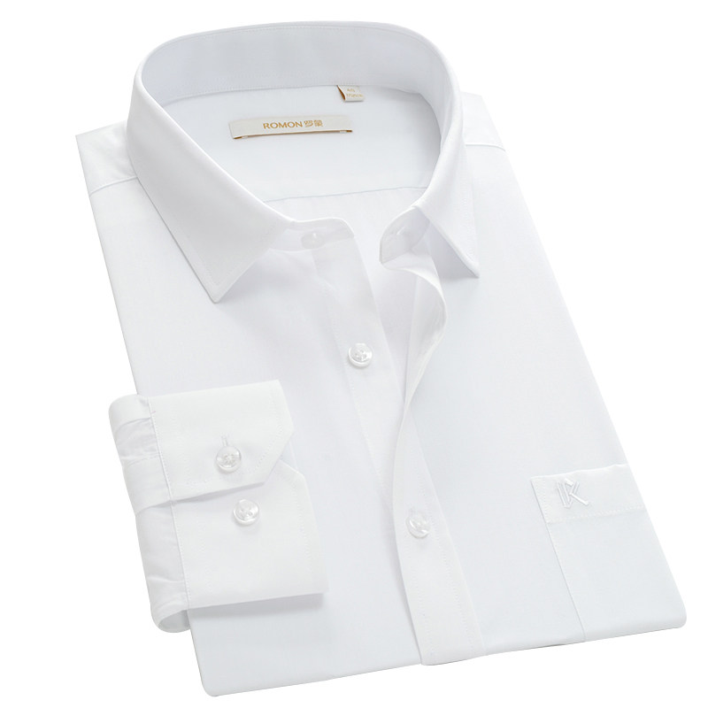 Romon Spring Men White Flat Sleeve Shirt Youth Business Suite Clothes All Cotton-Free Iron Shirt
