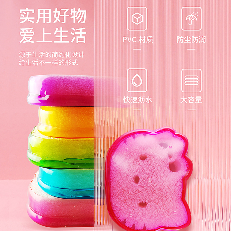 South Korean kT cat with oxygen soap box bath sponge drain soap case Absorbent Sponge Candy Color Katong Soap Box