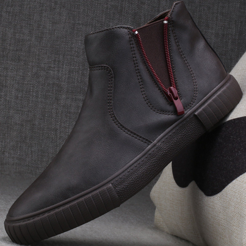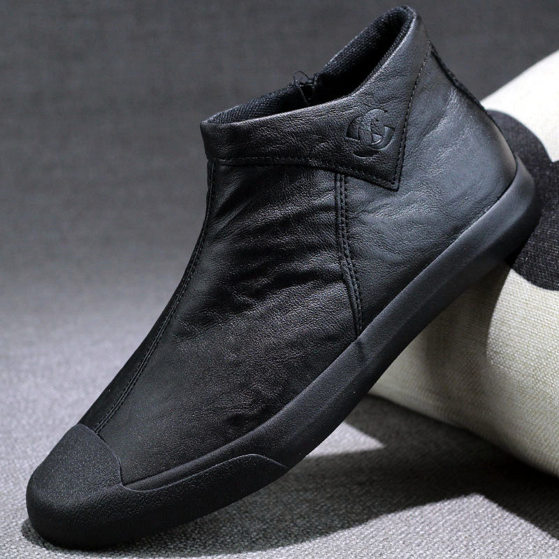 Men's shoes autumn high-top casual leather shoes slip-on warm cotton shoes 2022 new winter men's sneakers Martin boots