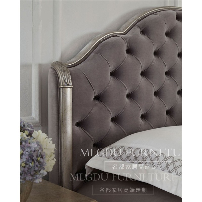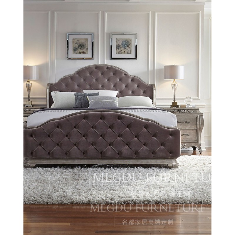 Cloth Art Bed Soft Bag Pull Buckle Solid Wood Bed High Backrest Bed Eurostyle Bed Head Cabinet Main Bedroom Room Double Bed Wedding Bed Retro