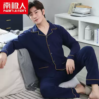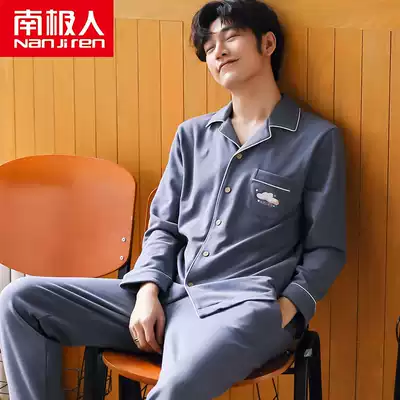 Antarctic people 2021 new pajamas men's spring and autumn pure cotton long-sleeved suit autumn men's loose home clothes