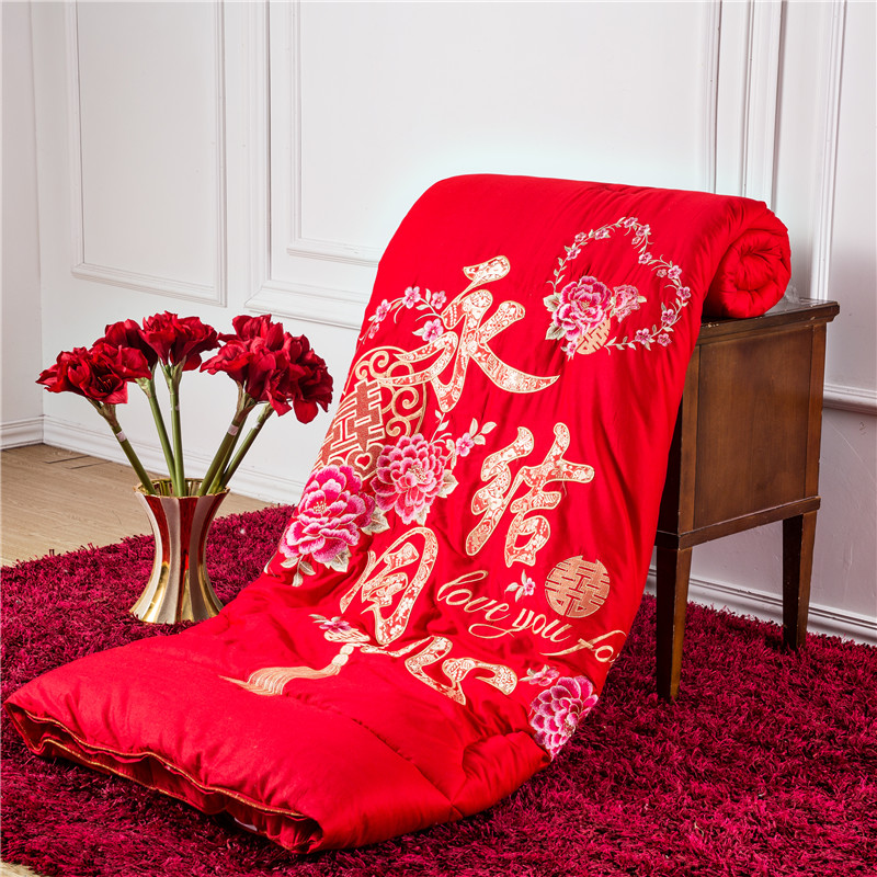 Cotton wedding quilt big red embroidered dragon and phoenix double wedding happy wedding wedding wedding wedding feather velvet core winter quilt