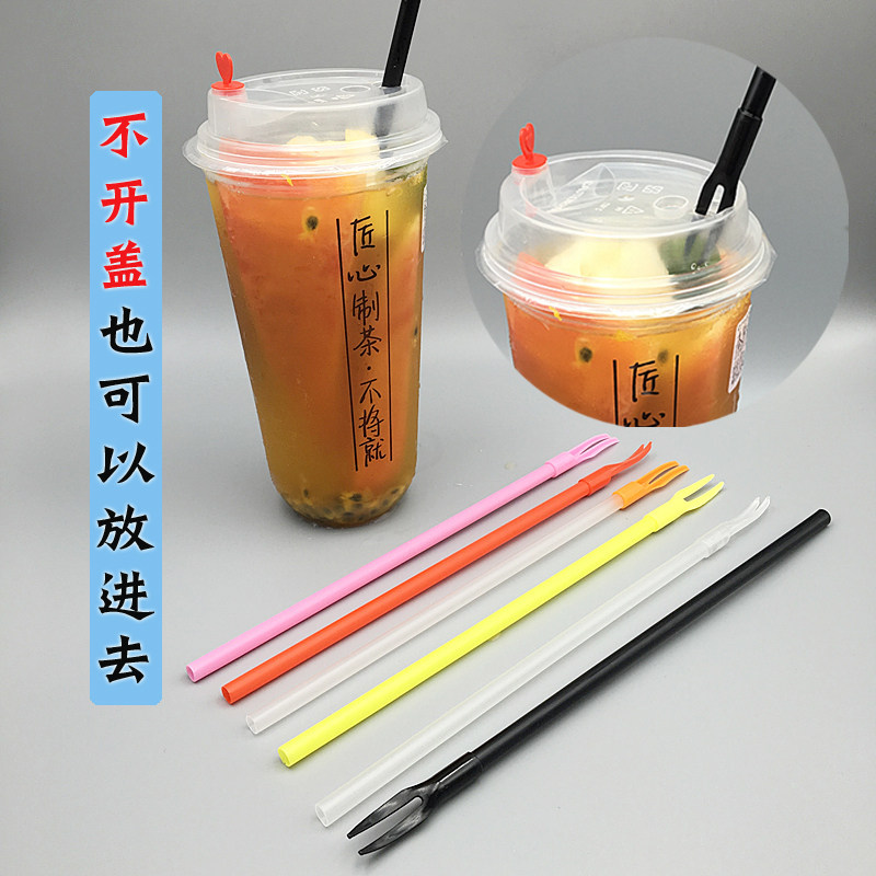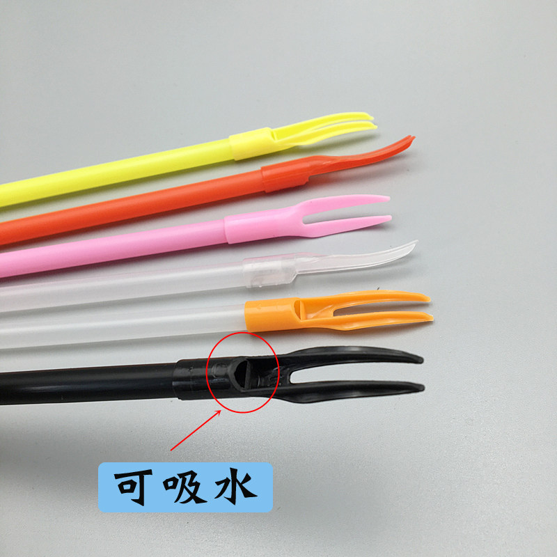 Pellets extend disposable fruit fork fruit tea long fork straw fork dual plastic long - handle milk tea store fork fork
