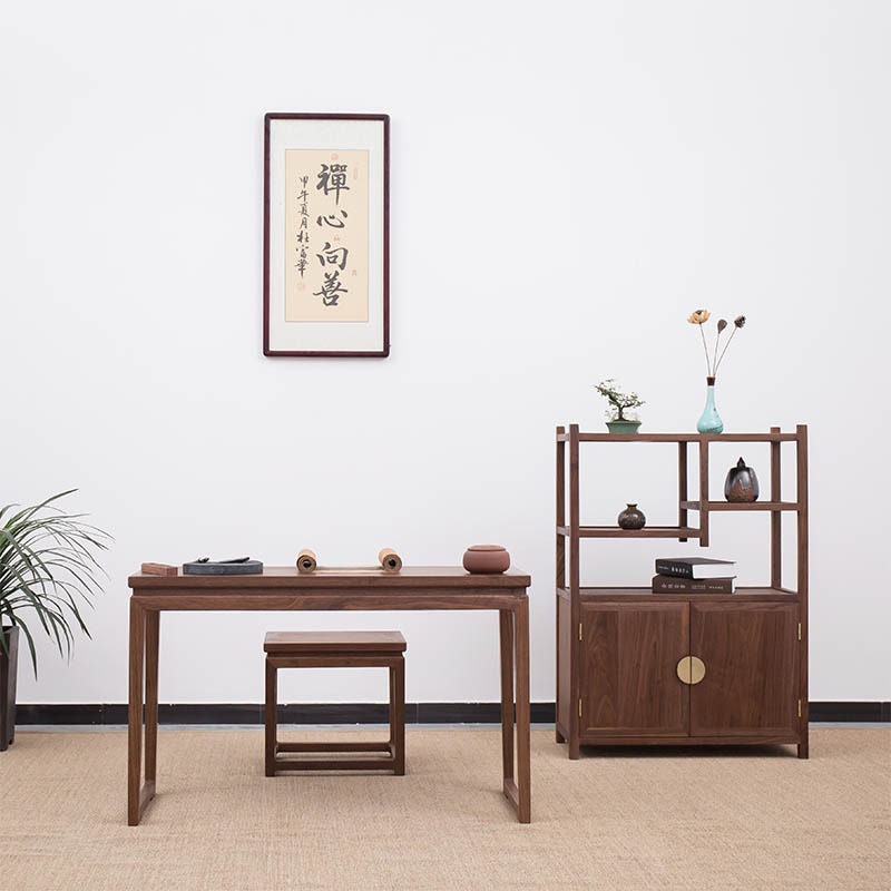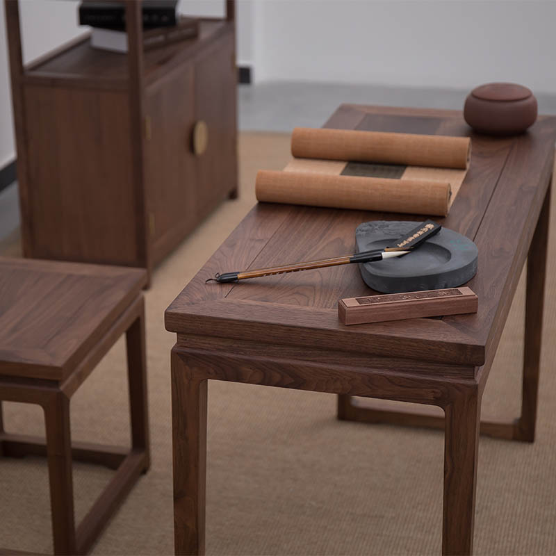 New Chinese guqin table stool solid wood resonance piano table black walnut old elm home student writing desk