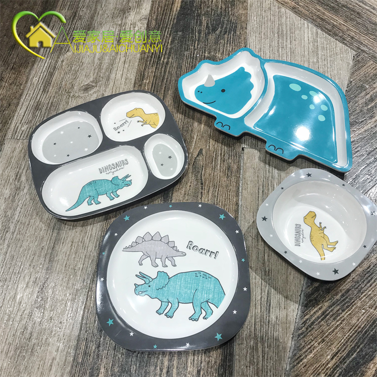 modern house cute dinosaur cartoon figure melamine bowl plate dinner plate rice bowl children's tableware dividing plate