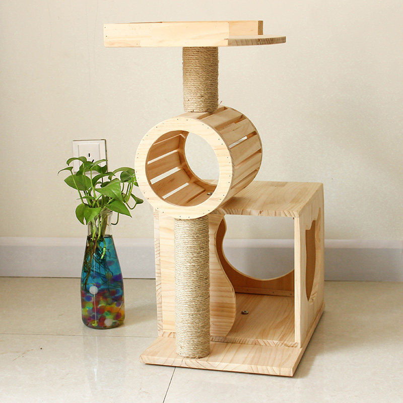 Solid wood cat climbing frame cat litter wooden cat rack pet cat supplies cat toy sisal cat scratching column cat jumping platform