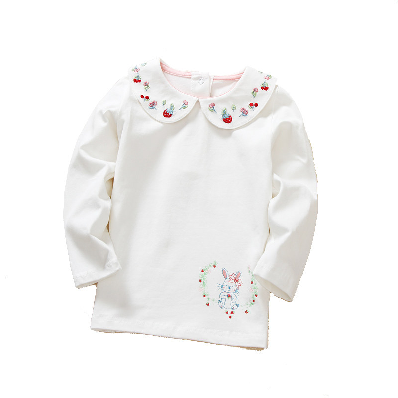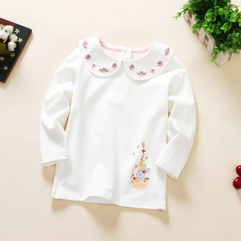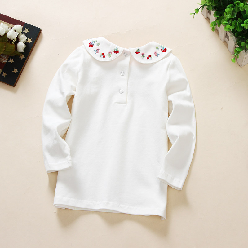 Han Edition Child Clothing Autumn New Girl Pure Cotton 100 Lap Long Sleeve T-shirt White Doll Collar Inner Hitch Shirt Child Blouse