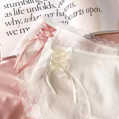 Japanese Princess ribbon sweet lace no trace underpants waffle cotton quality medium low waist breifs safety pants women