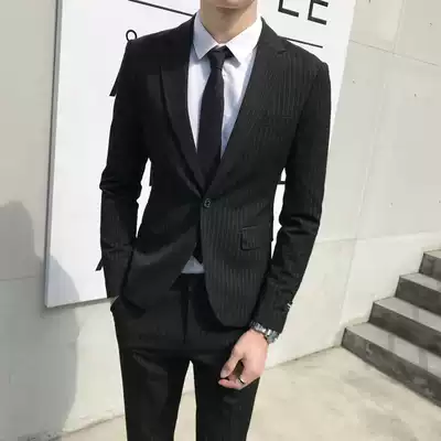 Stripe suit suit men slim handsome casual business dress British style small suit male groom wedding dress
