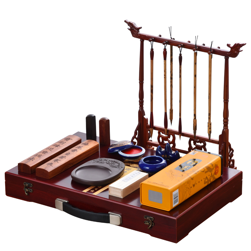 Nosino Zen World Carving Dragon Study Room Four Treasures Boutique Set Pen and Ink Paper Yan Adult High-grade Gift Box Professional Calligraphy Supplies Wolf Hao Rabbit Milli Brush Duan Yan Zhen Ruler Emblem Ink Brush Holder Rice Paper Ink