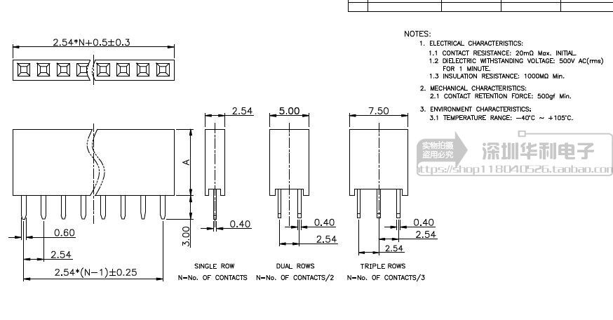 Single row female 2 54MM pitch row bus row pin socket female seat pin seat 1*2P3P4P5P6P40P