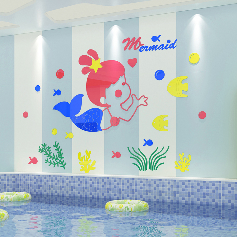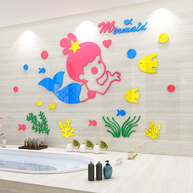 Mermaid Acrylic Wall Patch 3d Solid Children Room Baby Bedroom Bedside Decorated Nursery Wall Deco