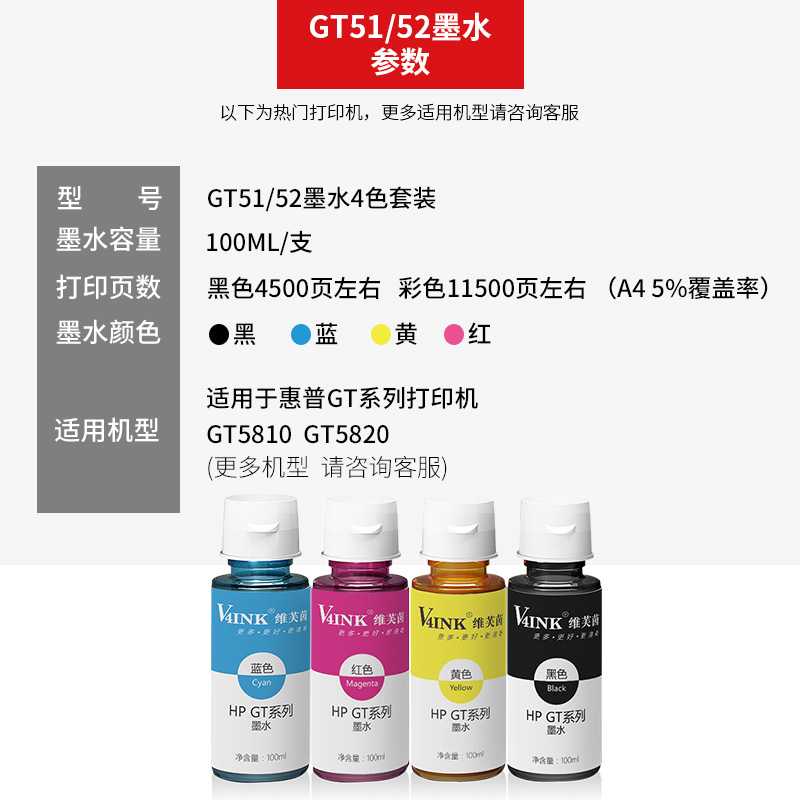 V4INK for GT51 Ink GT52 Ink 4 color set 100ml hp hp GT5810 GT5820 418 419 4