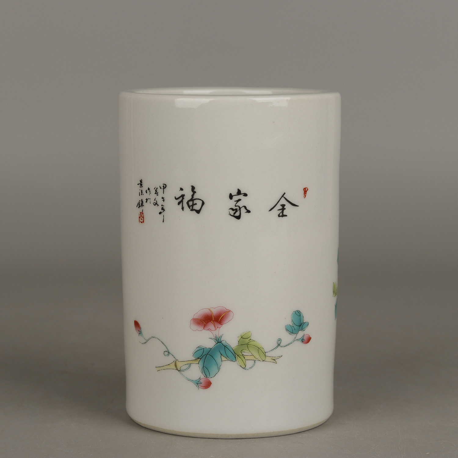 Qing Guangxu year-made pastel rooster family blessing child mother pattern small pen holder antique porcelain antique antique