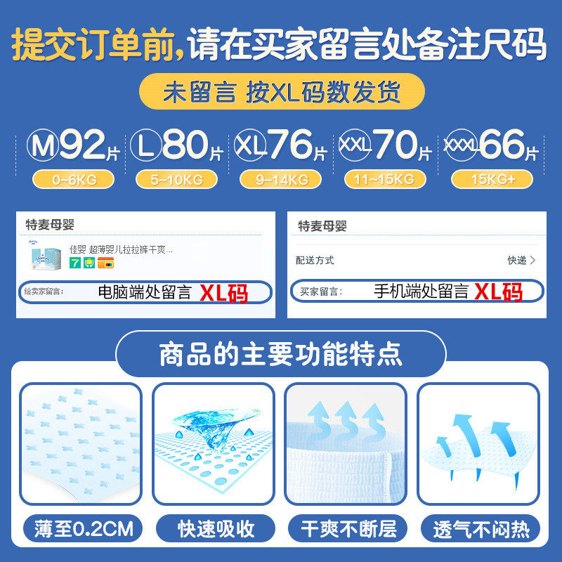 Jiaying Yunrou pull-up pants M L XL XXL code ultra-soft thin breathable dry newborn male and female baby diapers