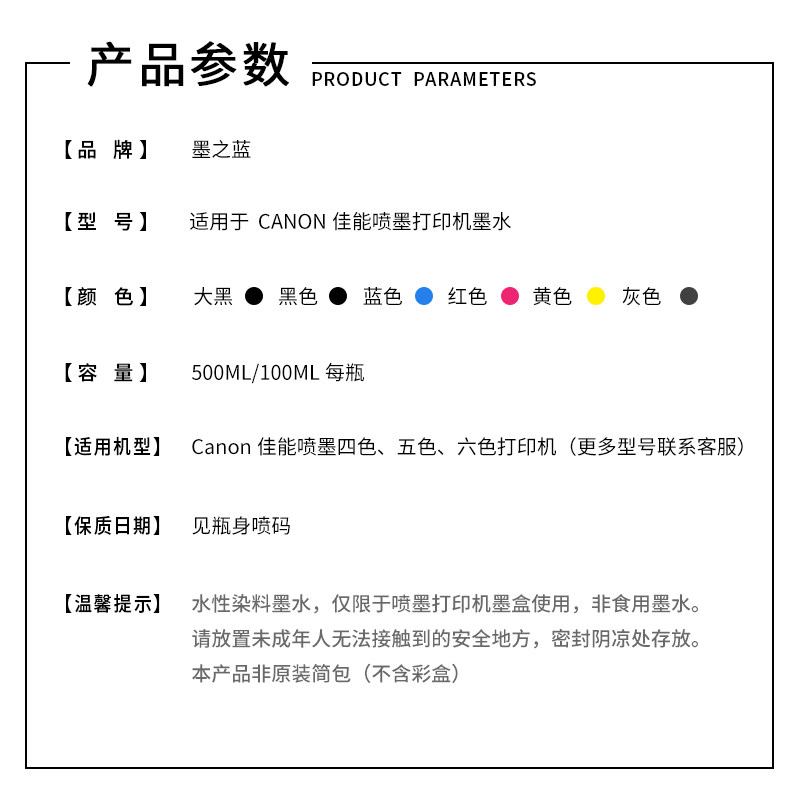 4 colors 100ML each (black, blue, red and yellow) 5 colors each 100ML (black, blue, red and yellow) 6 colors each 100ML (black, blue, red and yellow) 4 colors 500ML (black blue and red yellow) 5