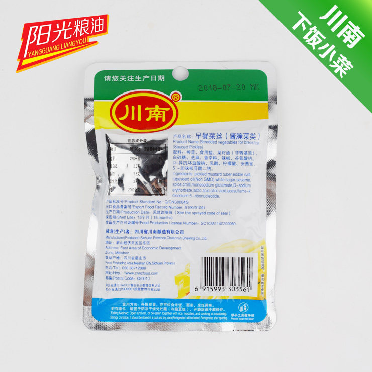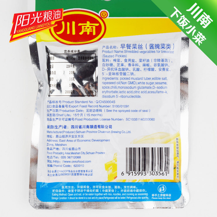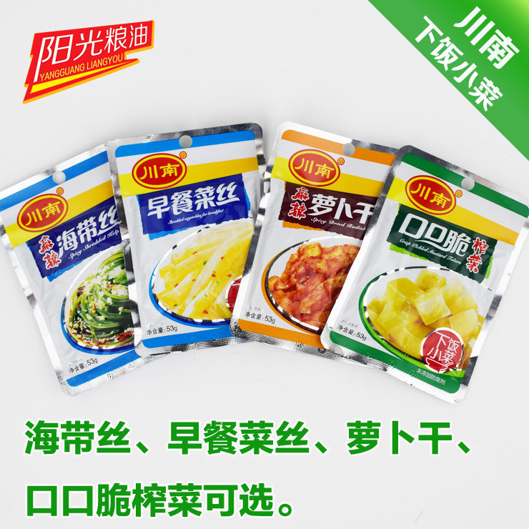 Sichuan Nan Breakfast Vegetable Silk 53 gr Sichuan South mouth Crisp Pickle 53 gr Sichuan South Student Squeezed Vegetables 53 gr Sichuan South Spicy Radish Dry 53 gr Sichuan South Spicy Kelp Silk 53 gr